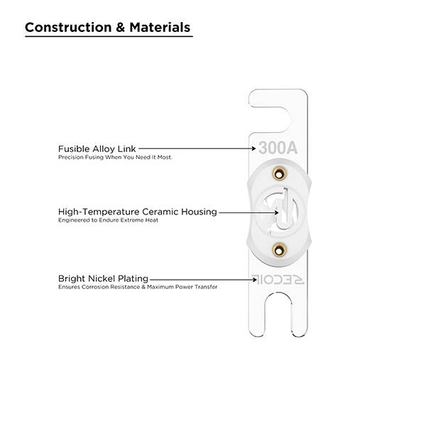 Upgrade your circuit protection with the Edge CANL Series Ceramic ANL Fuses. Unlike ordinary ANL fuses that use Bakelite housings, these heavy-duty fuses feature a high-temperature ceramic casing that withstands extreme heat without deforming or melting. Ceramic provides superior insulation and heat dissipation – critical for high-amperage applications like competition car audio systems, large solar arrays, marine electronics, and RV power centers. Available in precise ratings: 150A, 200A, 250A, 300A, and 400A (sold individually). Compatible with all standard ANL fuse holders and works with 12V, 24V, and 32V DC systems. When a short circuit or overload occurs, the CANL fuse blows instantly to protect your amplifiers, batteries, controllers, and wiring. Don't trust your expensive equipment to Bakelite – choose ceramic.