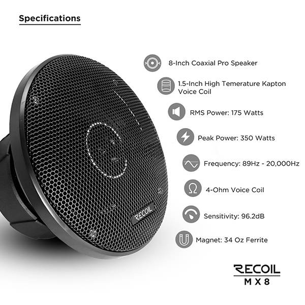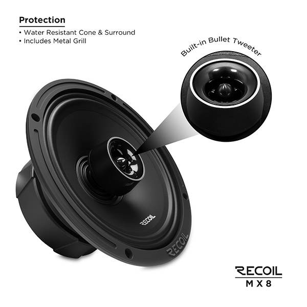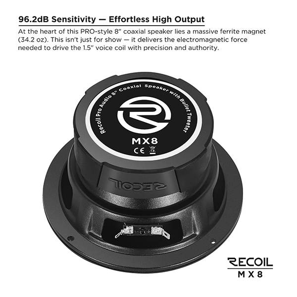 Upgrade your vehicle’s audio system with the Edge Audio MX8 8" Pro Coaxial Speaker, engineered to deliver breathtaking sound quality, incredible loudness, and studio-grade clarity. Designed for audiophiles, car enthusiasts, and professional installers, the MX8 combines a high-efficiency bullet tweeter with a powerful 8" mid-bass driver to produce a rich, dynamic, and immersive listening experience—whether you're cruising in your car, truck, or boat.