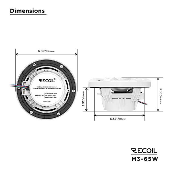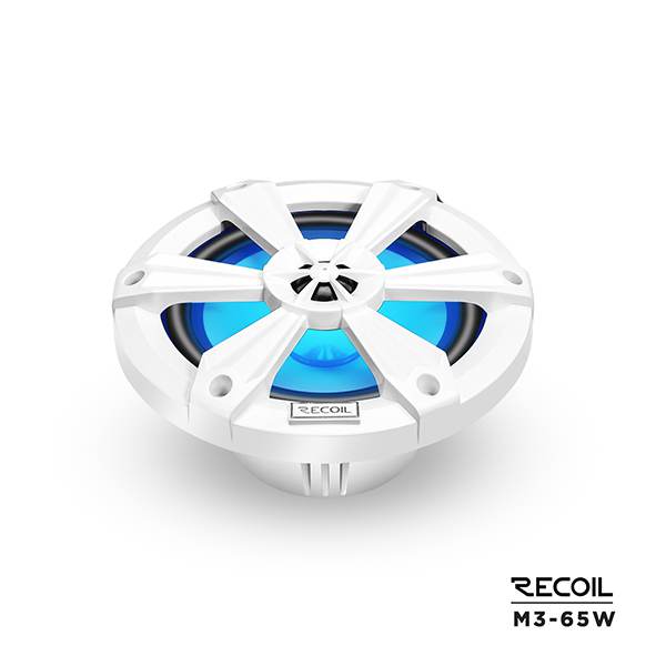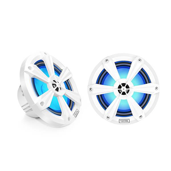 Pair of 2-way white marine speakers with 1.2” voice coil for clean and loud audio performance. Features 1” dome tweeter with neo-magnet.