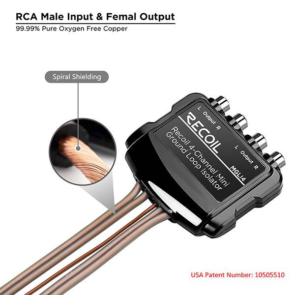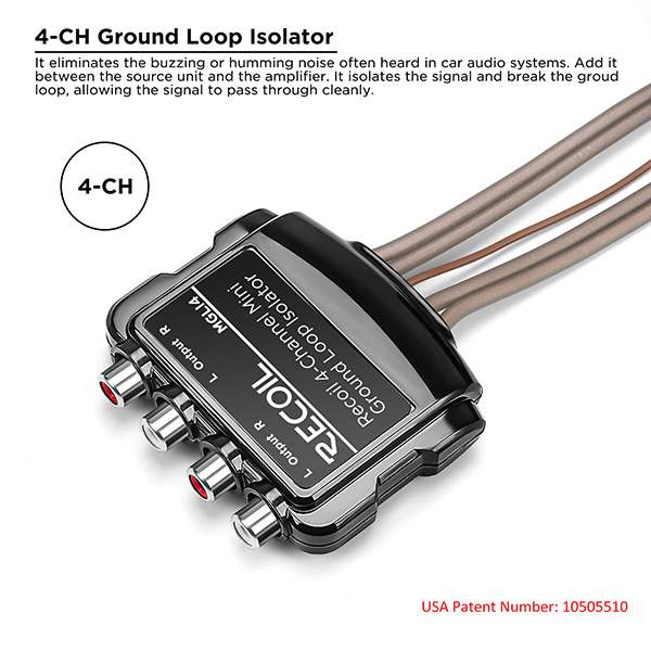 • Eliminates ground loop noise between the audio source and radio. For use with audio devices have 4-Channel RCA audio outputs, including pre-amp outputs.