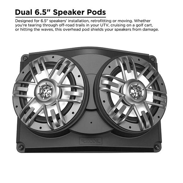 - Edge universal dual 6.5” speaker pods are for speakers’ installation, retrofitting or moving. Whether you're tearing through off-road trails in your UTV, cruising on a golf cart, or hitting the waves, this overhead pod shields your speakers from damage while maintaining crystal-clear sound.