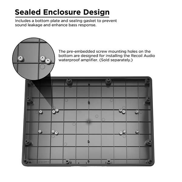 - Edge dual-speakers’ pod is designed with bottom plate and sealing gasket; it helps speaker to be mounted tightly and prevents sound leakage for better sound enjoyment.