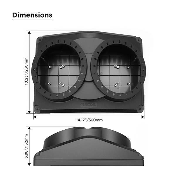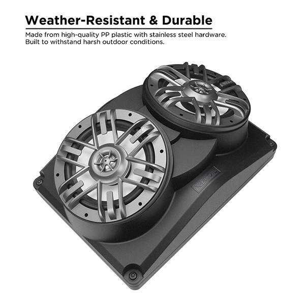 - Edge speaker pods can be mounted on any 360mm x 260mm (14.17” x 10.23”) flat surface for various occasions, such as UTV roof, Golf Cart roof, rear deck of cars, trucks, boats and more.