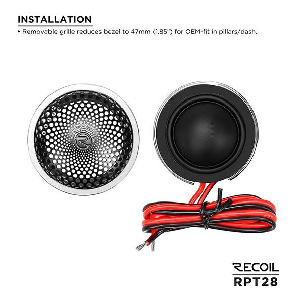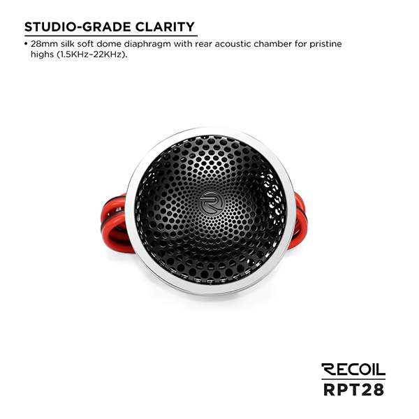 Introducing the Edge Audio RPT28 Hi-Fi Rear Chamber Tweeter – engineered to transform your car into an acoustic sanctuary. Featuring a silk soft dome diaphragm and a unique rear chamber design, the RPT28 delivers crystal-clear highs without harshness, reproducing frequencies from 1.5KHz to 22KHz with studio accuracy.