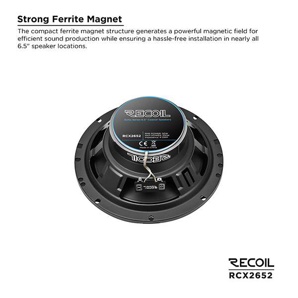 The compact ferrite magnet structure generates a powerful magnetic field for efficient sound production while ensuring a hassle-free installation in nearly all 6.5" speaker locations.